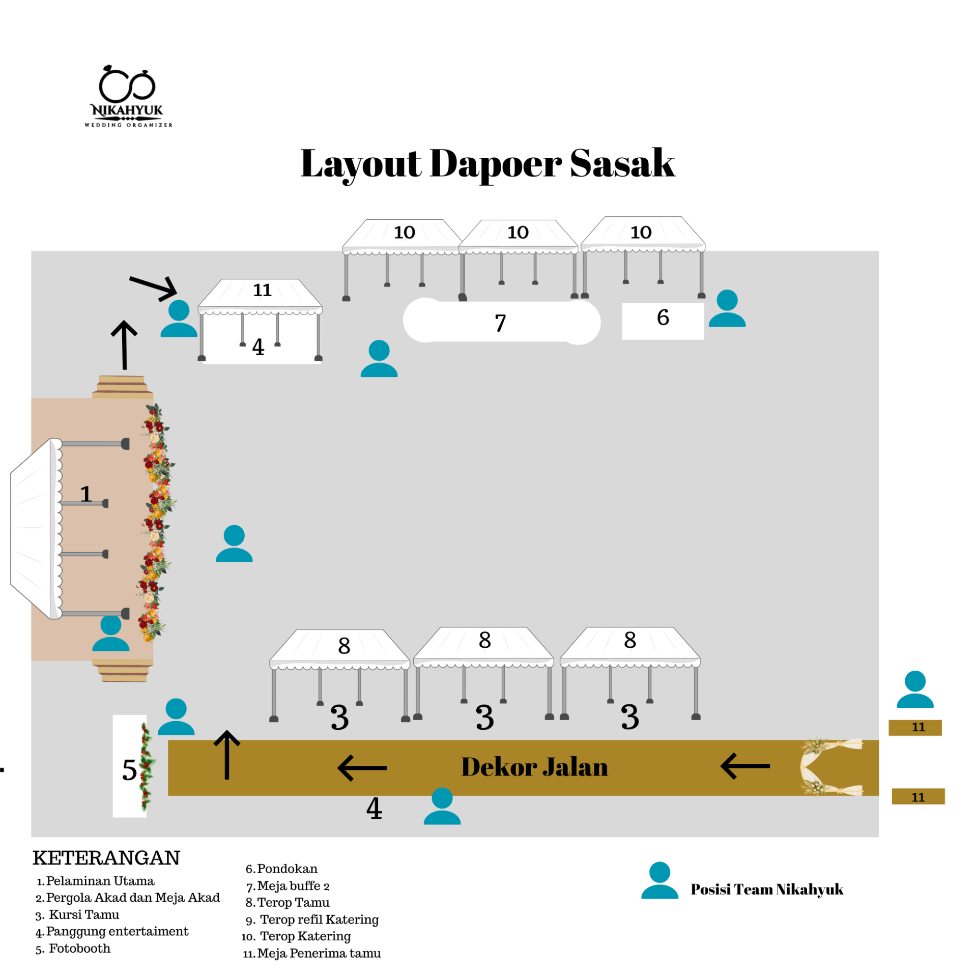 - Setup dekor sesuai layout & referensi foto